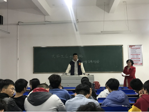 在班主任曹清老师的引导下,同学们踊跃上台表达了自己的看法。谢计玉同学认为在大学中应学习一门专业技能,并不断通过实践进行练习;姚传凯同学认为要致力于专业知识的学习,不断积累经验;还有的同学认为,在大学应不断提升自己各方面的能力……