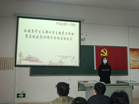 (机械系 全春艳)不忘初心感党恩,我与祖国共奋进。为了庆祝建党100周年,引导机械系学生党员听党话、跟党走,进一步激发全体学生党员的爱党爱国热情,增强历史责任感和使命感,4月13日下午,机械系学生党支部召开了庆祝建党100周年系列活动启动仪式。