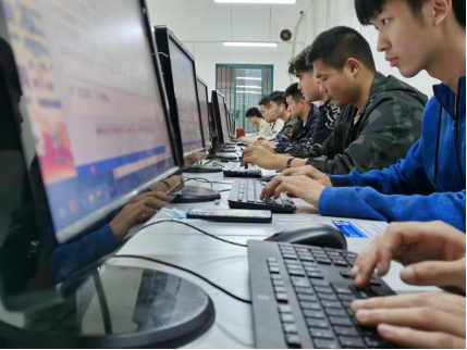 比赛期间,38名参赛选手聚精会神地盯着电脑屏幕,指尖在键盘上飞快地跳跃,展现了理工学子良好的精神面貌。