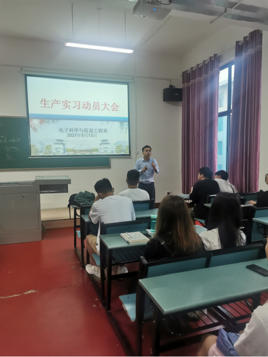 (电信系 胡耀男)5月18日下午,电信系在J4-229举行2018级电子类学生专业实习动员大会。电信系副主任王献合出席会议。电信1811、通信1811、自动化1811全体学生参加了会议。