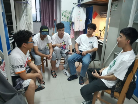 每个寝室在寝室长的带领下促膝长谈。从专业学习、恋爱交友、健康生活等方面展开讨论。寝室成员之间相互提问回答,互相分享各自的烦恼琐事,发泄自己的消极情绪,对有消极情绪的同学进行及时的劝解。思想和情感的碰撞让寝室一家人的距离越来越近。