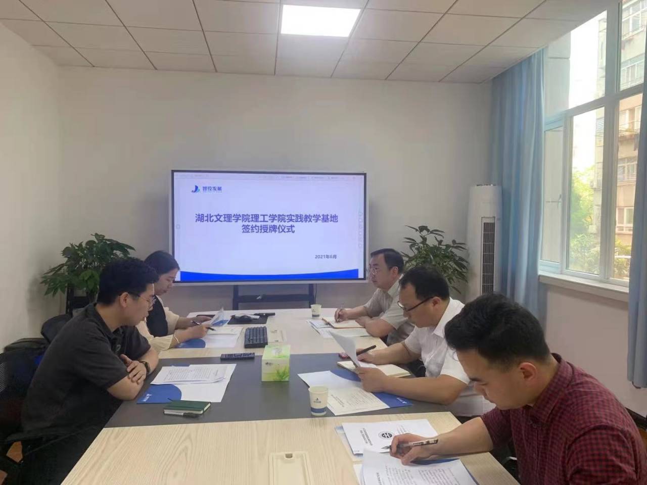 (建工系 马缓)6月1日,由襄阳智投教育发展有限公司与我校共同打造的教学实践基地签约仪式在智投公司106会议室举行。智投公司领导、我校教务处长胡阳、建工系副主任刘琦良等出席签约仪式。