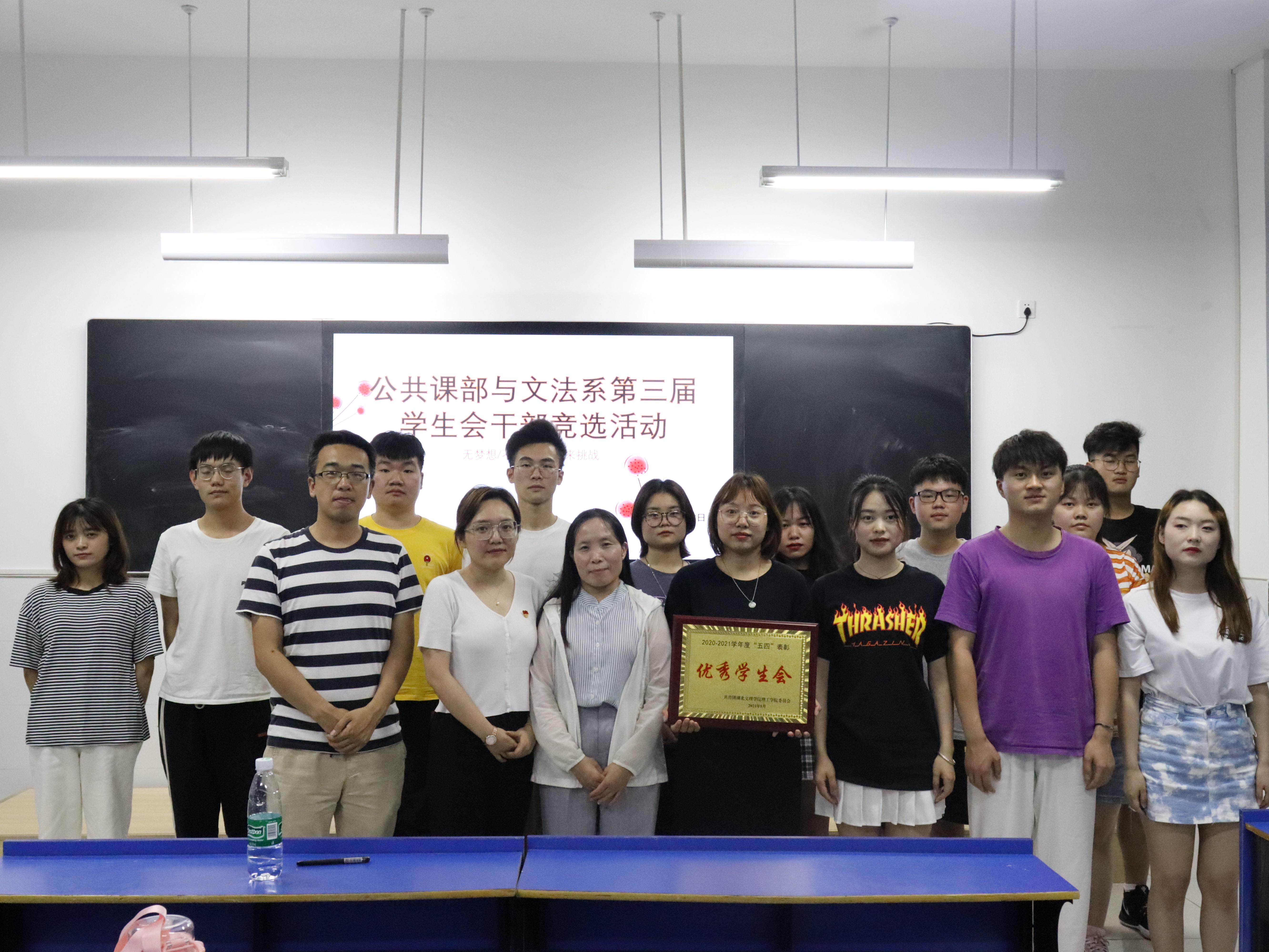 (文法系陈希)6月8日晚上,公共课部与文法系第三届学生会干部竞选在8教210教室举行。文法系党支部书记黄洁、辅导员老师、文法系第二届学生会主席团及各部部长与会。