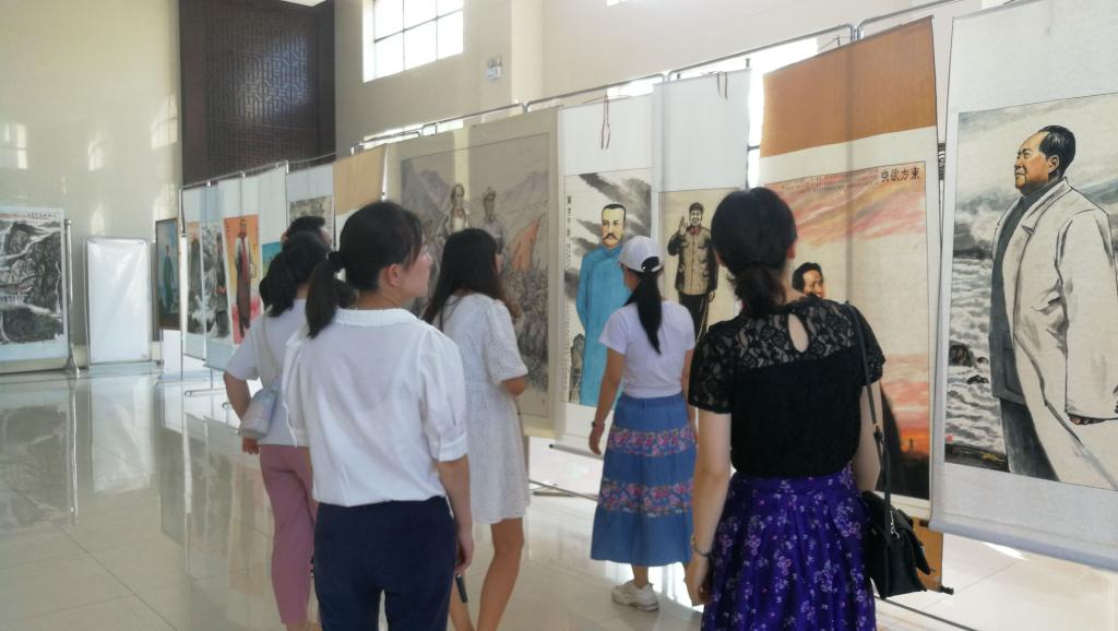 (建工系张巧巧)6月23日下午,建工系教工支部前往襄城区文化馆参观庆祝中国共产党成立100周年书画展。
