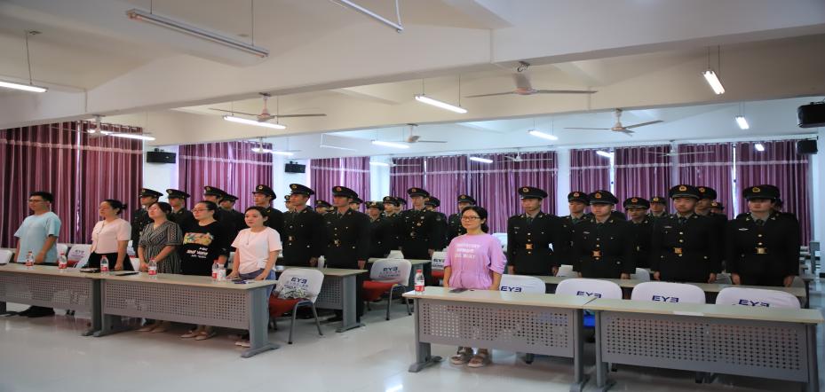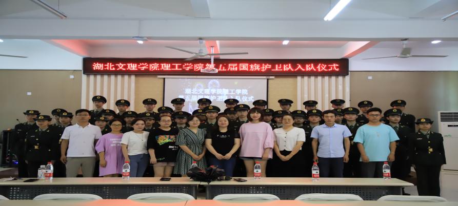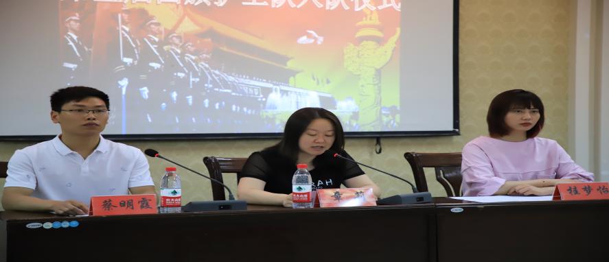 (学工处 蔡明霞)6月30日中午,我校第五届国旗护卫队入队仪式在一教104报告厅举行。学工处处长、团委书记、武装部副部长章莉,学工处副处长、团委副书记桂梦怡以及各系党总支副书记出席了本次活动。仪式由武装部蔡明霞同志主持。