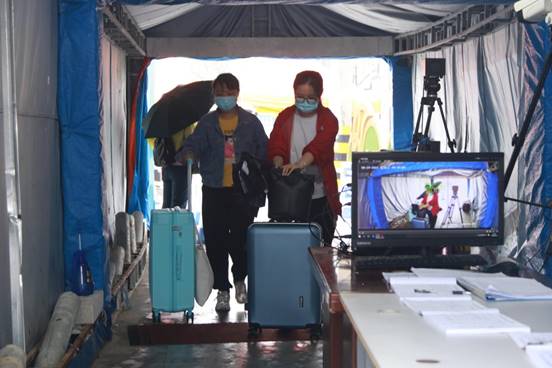 工作人员检查学生健康码绿码、绿色行程卡、48小时内核酸检测阴性证明