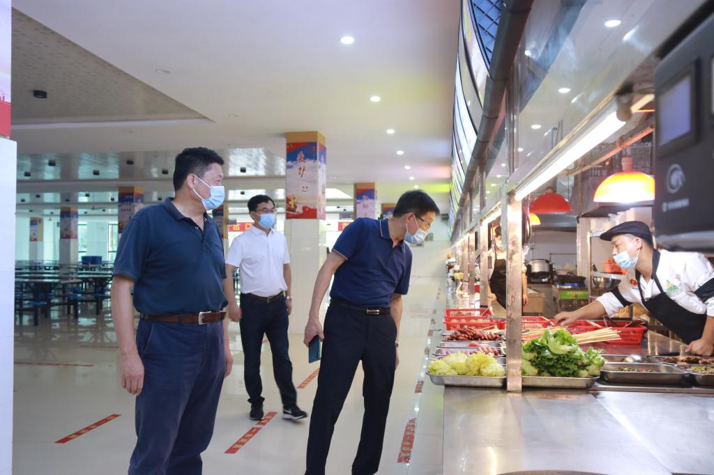 刘伦钊对我校的开学准备工作进行充分肯定,他指出食堂环境整洁、干净卫生、饭菜品种丰富、价格合理;学生宿舍宽敞明亮、居住环境舒适;教学秩序井然、师生精神饱满,教学楼消杀工作及时到位。