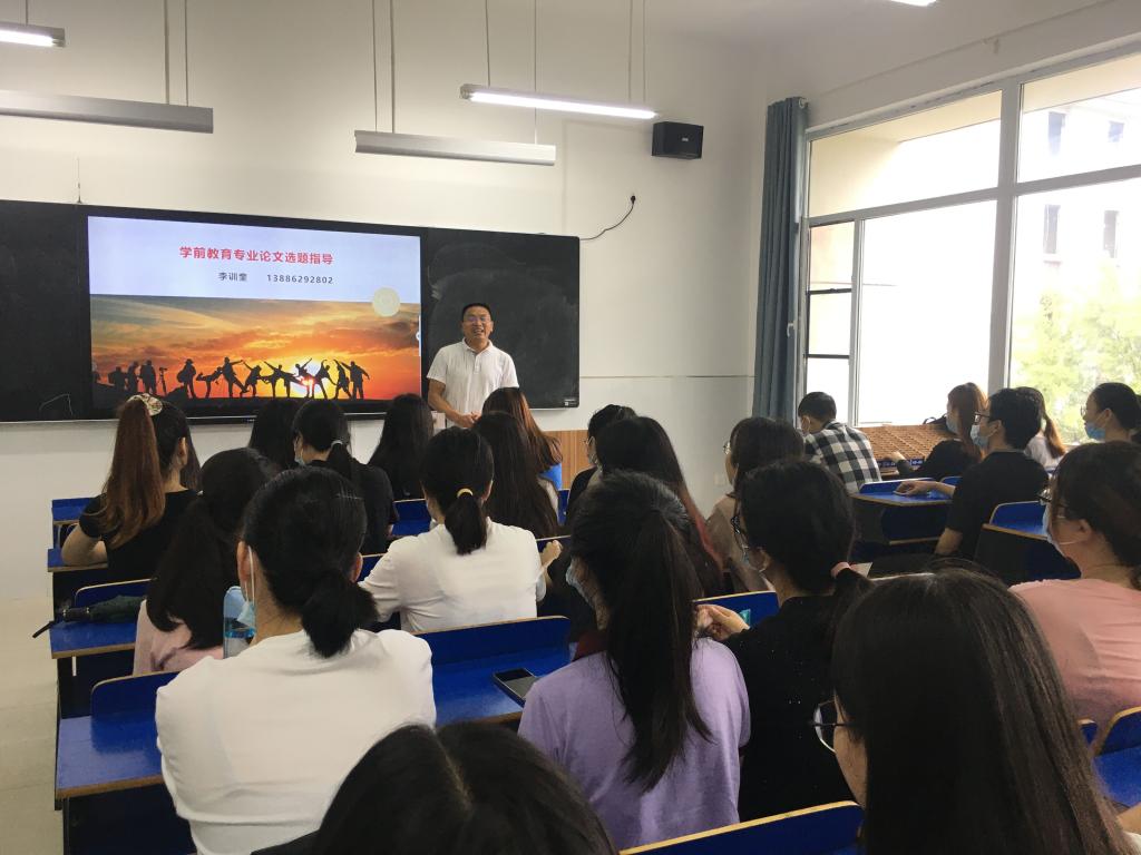 (外语系 许俊格)为了更好地指导学前教育专业毕业论文的撰写,提升学生的毕业论文选题方向和科研意识,9月6日上午,外语系特聘教授李训奎老师在J8-317为2022届毕业生开展毕业论文指导系列讲座第一讲。学前专业负责人于楠老师主持。