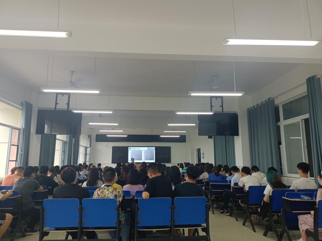 公共课部与文法系党总支副书记黄洁老师对同学们找工作抓住就业黄金期以及“双减”政策下不盲目备战考研、考公、考编问题做了详细介绍,使每个毕业生清楚知道自己接下来的任务和目标。