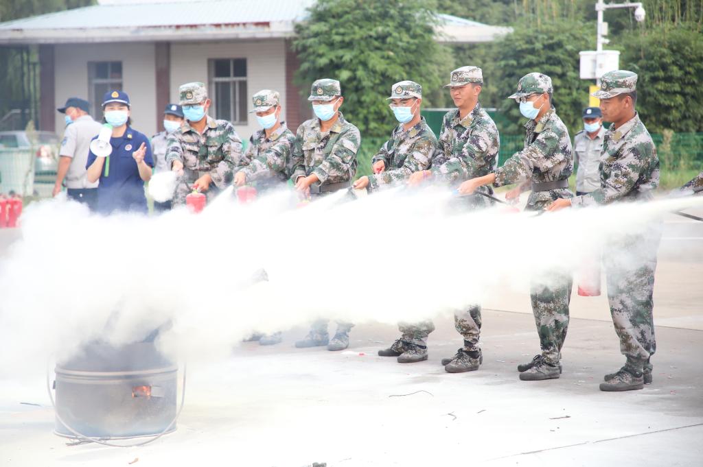随后,教师代表和新生代表在军训团团长蔡明霞同志的指导下,沉着镇定地开展灭火演练,迅速扑灭火情。