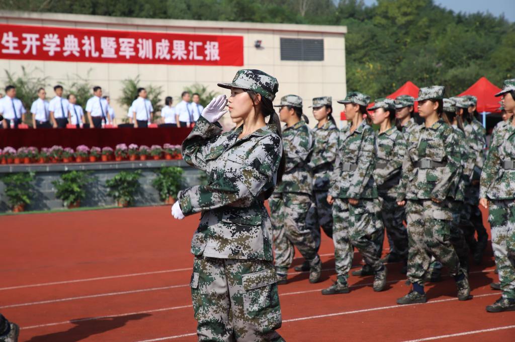“同学们好!”“院长好!”“同学们辛苦了!”“为学校争光!”军训成果汇报现场,口号震天。