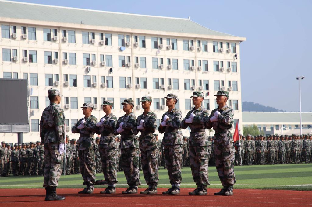 在校旗的指引下,2021级新生们踏着铿锵有力的步伐,吼着响彻云霄的口号,扬起坚毅的面庞,挺起坚实的臂膀,以15天来烈日下挥拳踢腿的汗水,留下此刻主席台前铮铮身板下的自信昂扬。而后精彩的队列队形表演、刺杀操表演和擒敌拳表演,再次让2021级新生的飒爽英姿给观礼师生留下深刻印象。