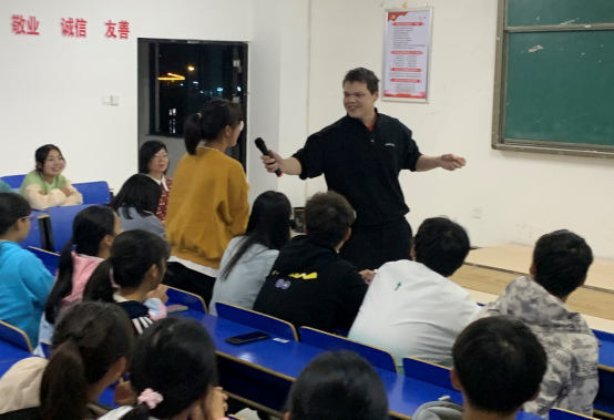 (外语系 乔冠亚)为切实提高同学们的英语交流能力,创造良好的学习氛围,10月23日晚,外语系携手英语乐园举办英语角活动。本次活动外语系邀请到来自美国的外教David和来自乌克兰的外教Anna参与,与同学们倾心交流、授业解惑。外语系王娟主任亲临指导。