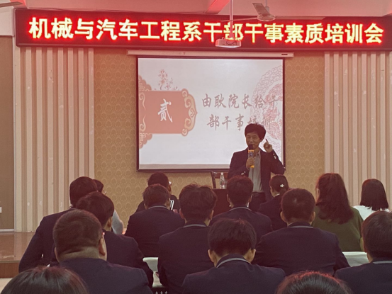 (机械系 胡旭涛)为加强学生会干部干事队伍建设,11月16日,机械与汽车工程系邀请了常务副院长耿帮才同志在一教104报告厅为学生干部干事进行了素质培训。