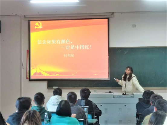 (建工系 姚琳楠)为贯彻落实习近平总书记党史学习教育动员大会讲话精神,引导学生党员做到知史爱党、知史爱国,在学习领悟中坚定理想信念。11月18日下午,建工系在J4-204教室举行学生党支部系列宣讲第二讲——信念如果有颜色,一定是中国红。建工系全体学生党员、2021级全体班委参会。建工系党总支副书记付明星主讲。