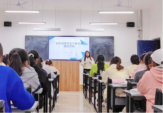 本次培训重点从如何成为一名优秀的学生干部、如何发挥学生干部先进模范作用、学生会管理细则、新媒体培训、公文写作技巧、活动策划和执行等方面进行了详实的培训。