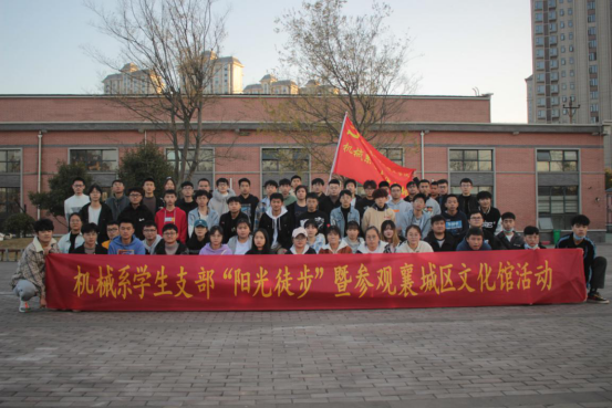 (机械系 胡旭涛)为了纪念中国共产党成立100周年,扎实推进党史学习教育,11月23日,机械系学生党支部开展“传承红色基因,弘扬革命精神”阳光徒步至襄城区文化馆进行参观学习。