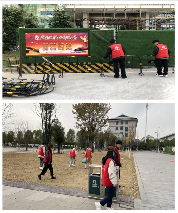 积极分子们分组积极进行策划,不仅前往襄阳革命烈士纪念馆、襄阳烈士陵园、襄阳红色记忆收藏馆等地开展党史实地学习,联系了各位积极分子的党员爷爷奶奶们进行了思想交流,深入学习党史知识。回到学校,积极分子们还开展了清洁教室、清洁食堂、清洁晾衣杆、清洁校园等实践活动,帮助学校保卫处进行疫情防控维护工作,保护校园卫生,维护校园文明。