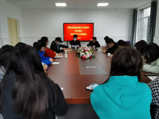 3月17日下午,学校“鄂西北教育发展与乡村振兴研究”团队在文法系会议室召开了2022年度工作推进会,分管科研工作领导耿帮才副院长进行了现场指导。会议由团队负责人高扬老师主持,全体团队成员与学生科研助理共16人参加了会议。