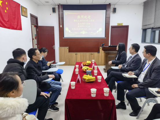 襄阳东莞证券王凌飞总经理详细介绍了该公司的发展历程、业务流程和未来市场发展前景等内容,让老师们对证券公司业务有了更为全面的认识。刘铁对东莞证券在全国大学生证券模拟大赛中的支持表示感谢,希望今后能够与之合作建立实习基地,培养合格的证券业人才,服务襄阳金融行业。