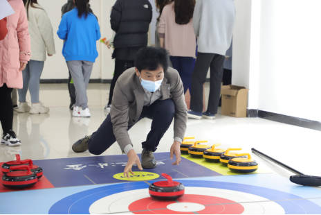 3月31日下午,欢呼声和掌声回荡在大学生活动中心一楼大厅,学工素质拓展活动正在这里进行。全体学工人员热情高涨,面对“旱地冰壶”“箭在弦上”“踏平压力”“合力建塔”四个项目,摩拳擦掌,跃跃欲试。