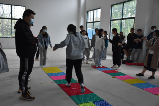 在“踏平压力”环节中,各部门的小组积极配合,将指压板带来的痛感抛之脑后。