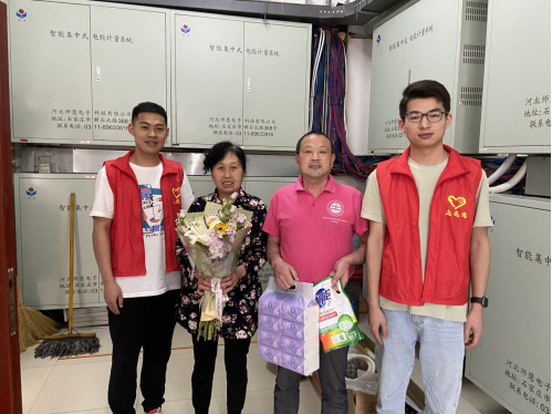 4月25日下午,为了感恩宿管叔叔、阿姨们在日常生活中提供的帮助,学生党员们手捧鲜花,带着慰问品来到了每栋宿管楼下,向宿管们表达了谢意与敬意,并帮助宿管人员对宿舍楼道、走廊等场所进行了清扫。