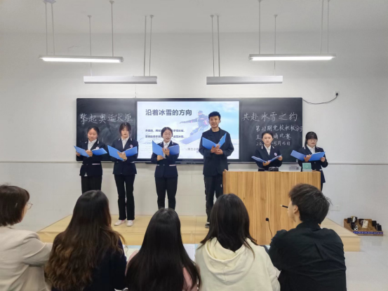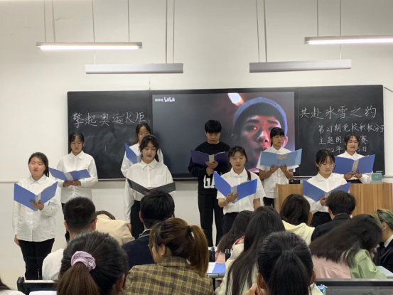 (公共课部与文法系 陈倩 邢忆)5月15日晚,公共课部与文法系第27期党校培训班在J8-206举办以“擎起奥运火炬,共赴冰雪之约”为主题的朗诵比赛。学生党支部全体支委成员担任评委。