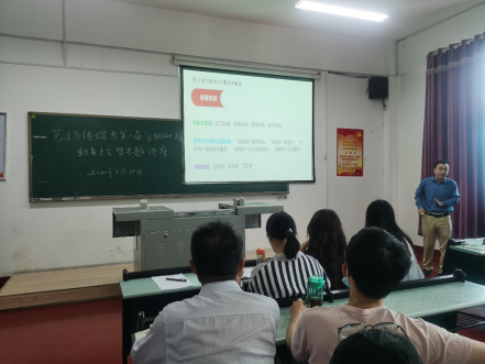 (艺传系 王小雨)5月25日下午,艺术与传媒系在J4-415举办了第八届“互联网+”大学生创新创业大赛专题讲座。讲座特邀电子与信息科学系副主任王献合进行讲授,艺传系全体教师及学生代表参加。