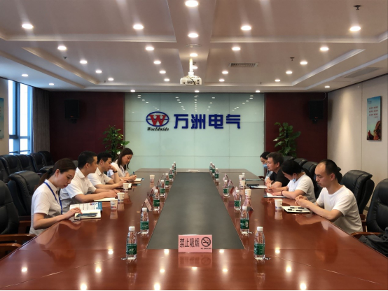 在万州电气相关负责人的陪同下,汪波一行参观了生产园区,了解了公司生产经营情况、公司文化以及企业发展战略等。在节能研究中心听取了工程师讲解WOES智能优化系统及远程服务平台专项汇报。