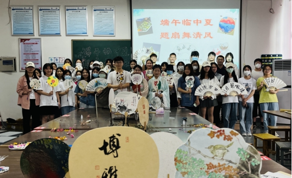 (艺传系 夏奥炜 张馨怡)时近仲夏,在传统端午节来临之际。5月29日,艺术与传媒系分团委书画艺术协会举办了“端午临中夏,题扇舞清风”主题活动。此次活动有来自全校各系60余名同学共同参与。
