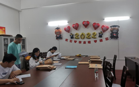在毕业生离校工作中,电信系提前谋划,采取了悬挂“祝福2022届毕业生鹏程万里、前程似锦”的条幅,张贴“2022年毕业纪念登机牌”,布置会议室祝福墙,播放毕业季热门歌曲,为毕业生留念拍照提供创意手牌,设置饮水自取区供毕业生办理手续时自由取用等措施,营造温情送别毕业生的良好氛围,表达母校对毕业生的深切祝福与拳拳深情。