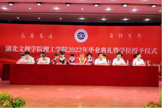 6月27日上午,大学生活动中心三楼报告厅焕然一新,在“我想对你说”“大学难忘瞬间”“同唱一首歌”温馨的暖场片中,在热烈的掌声中,学校领导、学校学士学位评定委员会成员在主席台就坐。学校2022届毕业生毕业典礼暨学士学位授予仪式正在这里举行。学校各职能部门负责人、各系学生工作负责人、毕业班辅导员、教师代表、毕业生代表共计300余人参加仪式。仪式由常务副院长耿帮才主持。