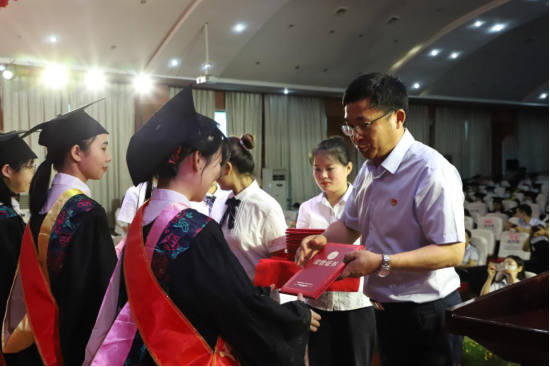 党委书记叶永涛为优秀毕业生颁发荣誉证书和纪念品,