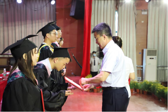 会上宣读了《关于颁发2022届毕业生毕业证书、结业证书、学士学位证书的决定》《关于表彰2022届优秀毕业生的决定》《关于聘任刘必胜等41名同学为yl8cc永利官网2022届毕业生校友联络员的决定》。学校领导分别为毕业生代表颁发毕业证书,为优秀毕业生颁发荣誉证书和纪念品,为校友联络员代表颁发聘书。