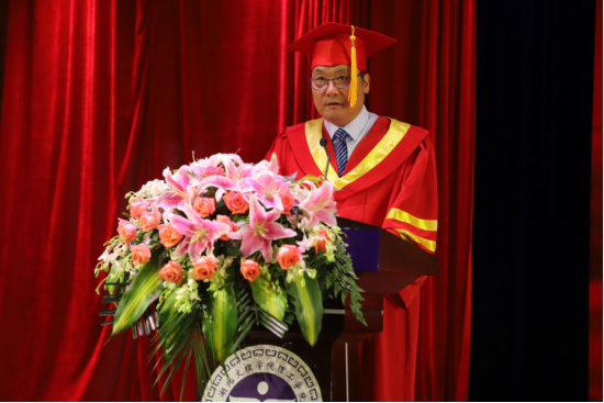 院长杨海浪发表了激情洋溢的讲话。他代表学校向学业有成的1412名毕业生致以热烈的祝贺,向受到表彰的同学们表示崇高的敬意,向为同学们的成长付出辛勤汗水的老师和家人们表示衷心的感谢。他希望毕业生们笃立鸿鹄之志,争做“坚定者”,拒当“犹豫者”;只争朝夕韶华,争做“奋进者”,拒当“懈怠者”;砥砺真才实干,争做“搏击者”,拒当“畏难者”。
