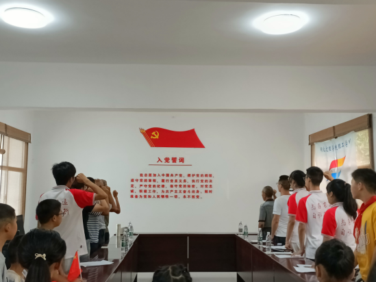大家在党旗下,一起重温了入党誓词。随后,老党员们进行了故事分享。