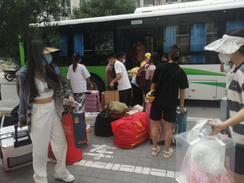 (经管系 吕星)8月23日,经管系学生结束专业实习,教学主任朱靖随车护送学生返校放置行李。