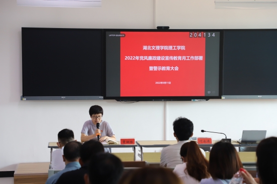 9月11日下午,学校在一教104室召开2022年党风廉政建设宣传教育月工作部署暨警示教育大会。学校领导、中层干部、思政课教师、辅导员代表参会。会议由党委委员、院长助理贾娴雅主持。