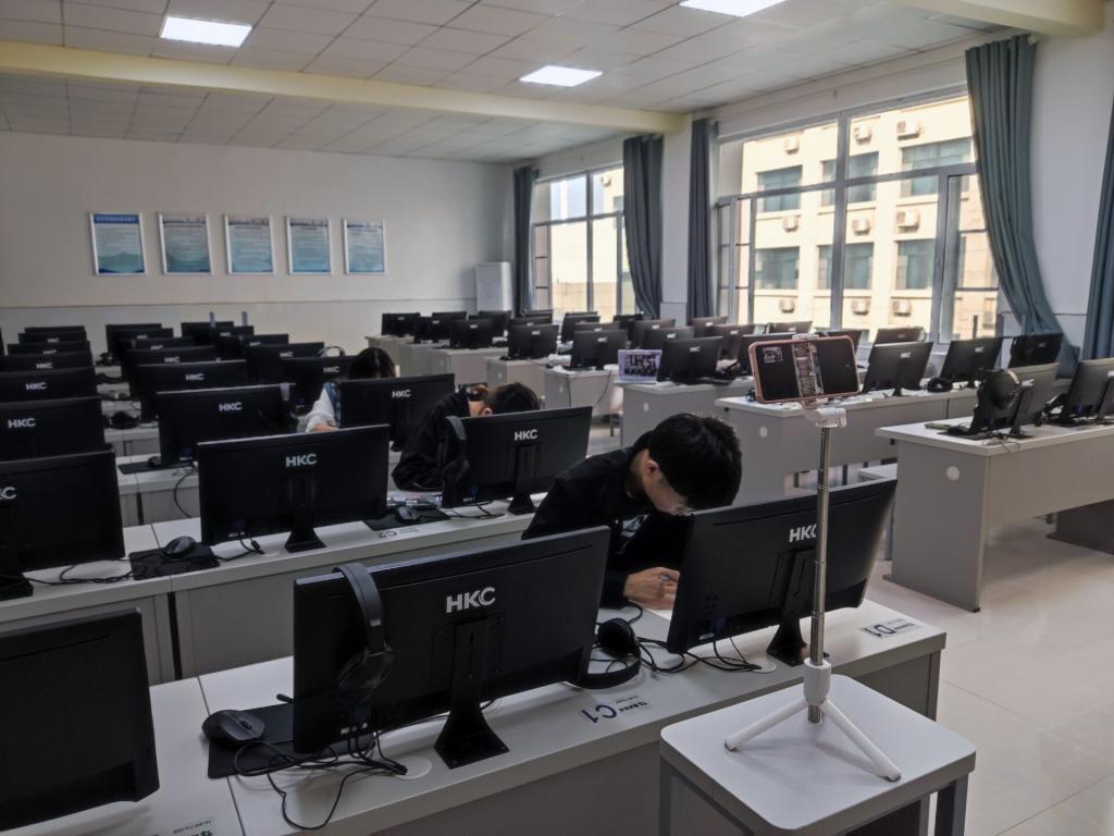 由于疫情原因,原定于10月23日在华中师范大学举行的全国决赛由线下转为线上。在组委会的周密安排下,我校于22日下午进行了模拟监考演练。借助腾讯会议平台和外语系语音教室,我校按要求在考场内设置双摄像头机位,确保教室内无监控死角。考生身份确认、拆封试卷、上传电子版试卷等监考过程严格按照竞赛流程进行。23日上午9:00至11:00,经过前期的充分准备,我校线上决赛顺利进行。