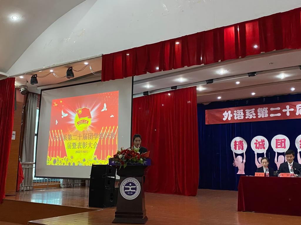 (外语系 匡子锐 熊艺群)10月27日下午,外语系第二十届团学组织换届暨表彰大会在大学生活动中心三楼报告厅举行。校团委副书记 、学工处副处长桂梦怡,外语系党政领导和辅导员出席本次大会,第十九届和第二十届团学干部及2022级全体学生参会。大会由外语系分团委书记王凯主持。