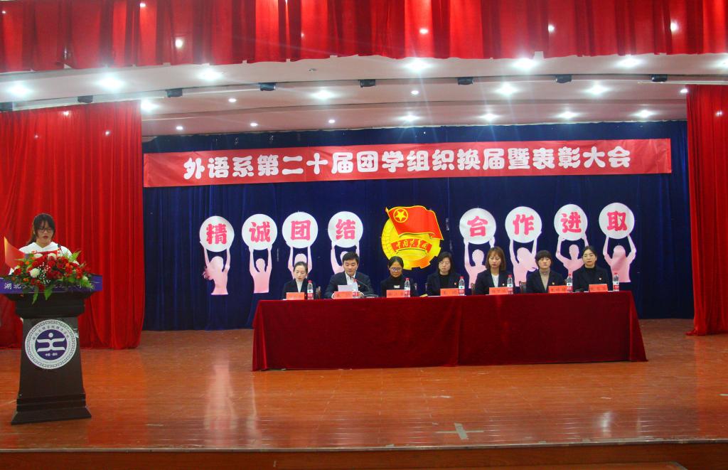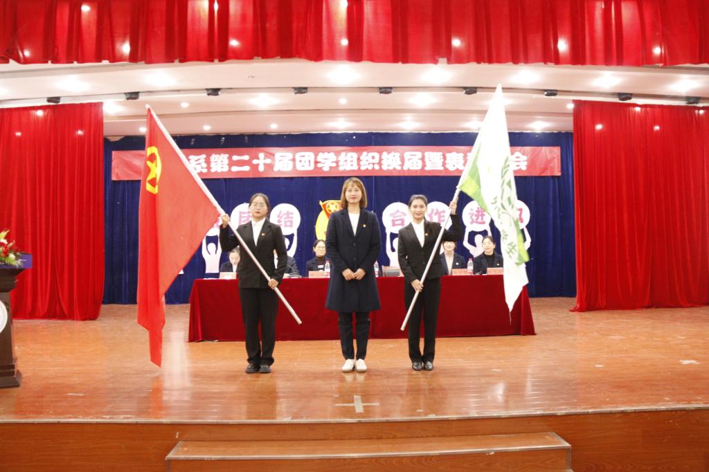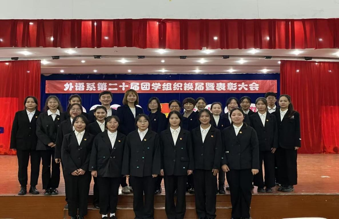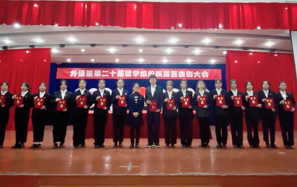 会上宣读了《关于外语系第二十届团学干部任命的决定》《关于表彰第十九届团学干部和秋季迎新优秀工作者的决定》,举行了外语系第二十届团学组织换届仪式,并对获得“优秀学生干部”“迎新优秀工作者”称号的同学进行表彰。