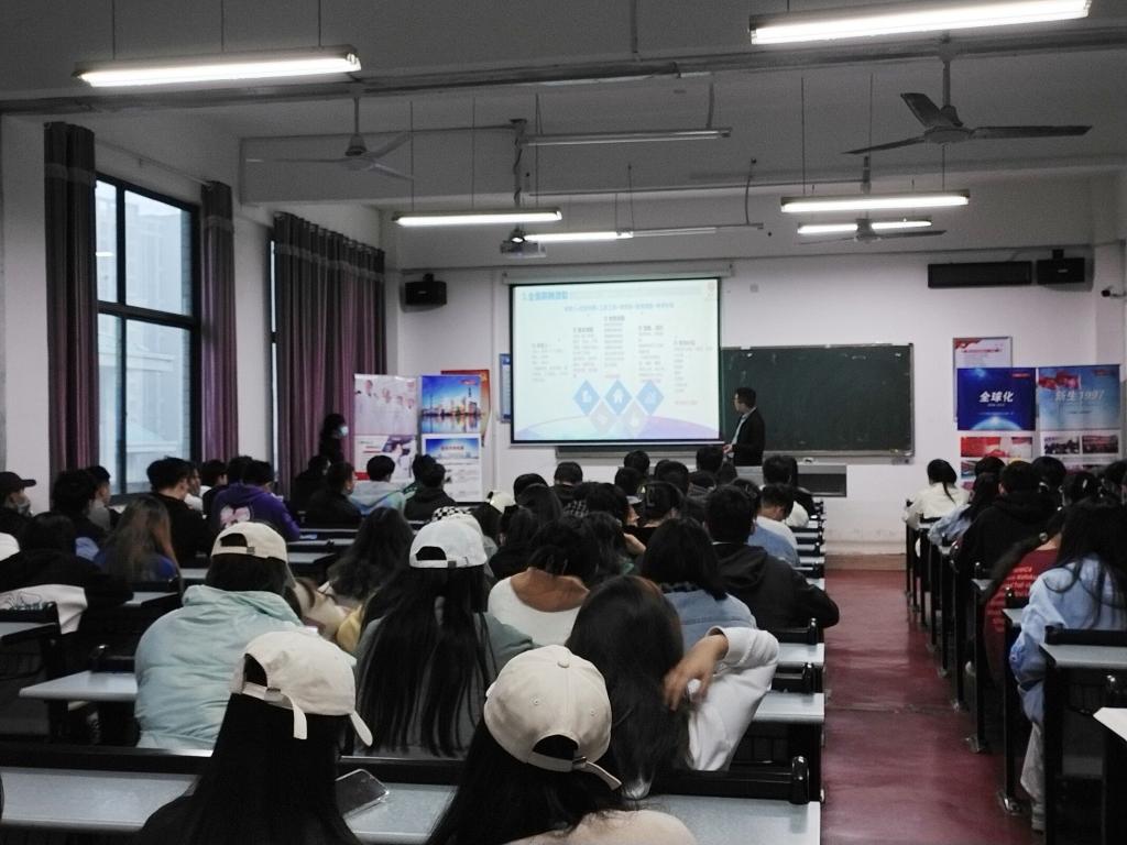 (经管系 杨家驹 肖瑜珠)10月27日下午,经管系特邀回天集团来我校举办2022届回天集团校园招聘宣讲会。经管系与机械系毕业班学生踊跃参会。