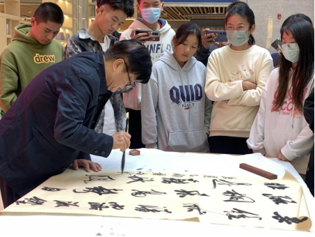 仪式结束后,刘水露主席为我校师生开办了“传承经典文化,书写精彩人生”书法讲座。