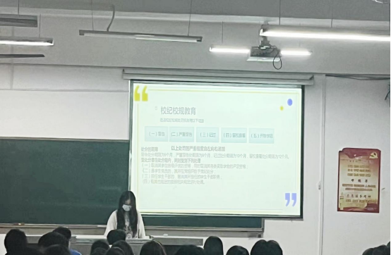 活动以PPT讲解的形式为主,开展有奖问答与案例分享。学习包括四个部分,分别是基本法律介绍、案例介绍分析、校纪校规教育与日常管理标准。