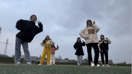 205室的同学们在操场上跳舞,她们活力四射,可爱又有趣。