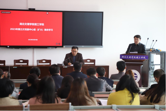 (宣传部 尚秀英)3月30日下午,学校在一教105报告厅召开党委理论学习中心组(扩大)2023年第三次集体学习会议。学校领导、中层干部、党支部书记、教工支部纪检委员参会。会议由党委书记叶永涛主持。