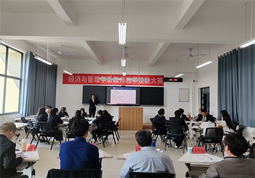(经管系 吕星)为全面推进教学理念创新,响应学校“关于举办2023年度教师教学技能大赛暨第一届教学创新大赛的通知”要求 ,5月11日,经济与管理学系在1教306教室举办了教师教学技能大赛。本次大赛邀请了校常务副院长耿帮才、校级督导刘学林教授、yl8cc永利官网汉江研究院王翔教授、yl8cc永利官网经济管理学院卢君生教授担任评委。