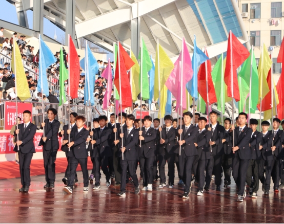 伴随着激昂奋进的《运动员进行曲》,仪仗队方阵、彩旗方阵、教工方阵、各系运动员代表队依次入场。他们队伍整齐、步伐坚定、口号嘹亮、红旗飘扬,每一方队在主席台前展示着各自特色及奋发向上的精神面貌,赢得现场师生雷鸣般的掌声。