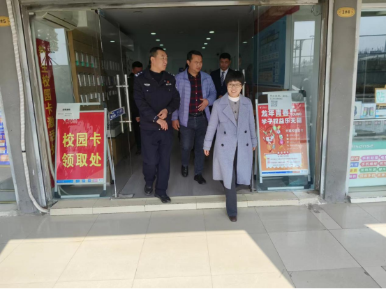 (后勤服务部 公超)3月14日上午,校长助理贾娴雅、尹集派出所驻校民警李东、陈文翔、后勤服务部部长牛攀山带领学校保卫、智投经营公司、物业等工作人员对学校商铺进行消防安全大检查。